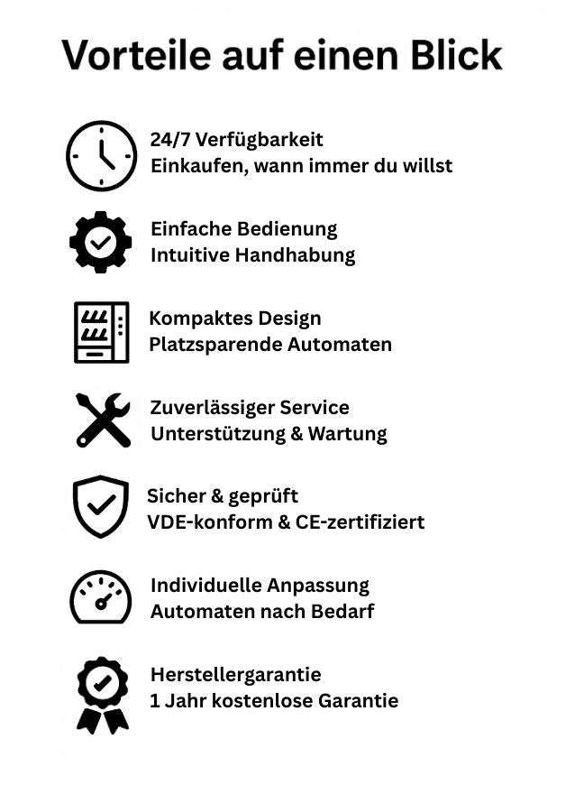 Unser Ziel: Mit dem E-Kiosk bieten wir ein modernes Einkaufserlebnis – schnell, kontaktlos und rund um die Uhr. Kein Personal, keine Warteschlangen – einfach per Knopfdruck dein Lieblingsprodukt genießen.